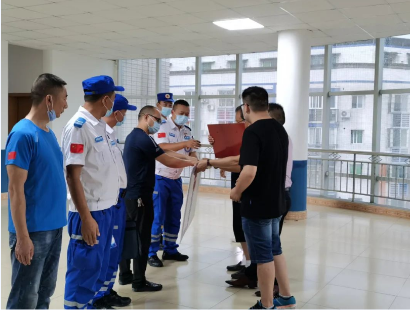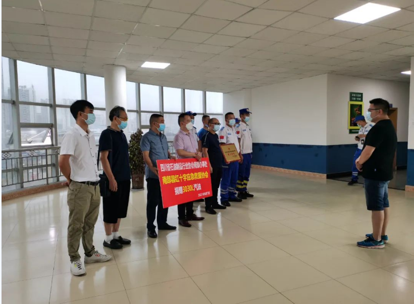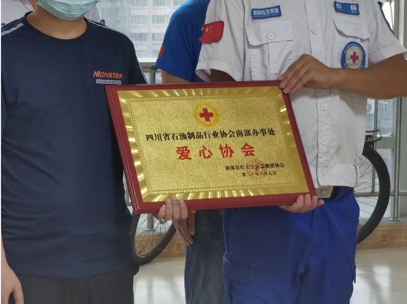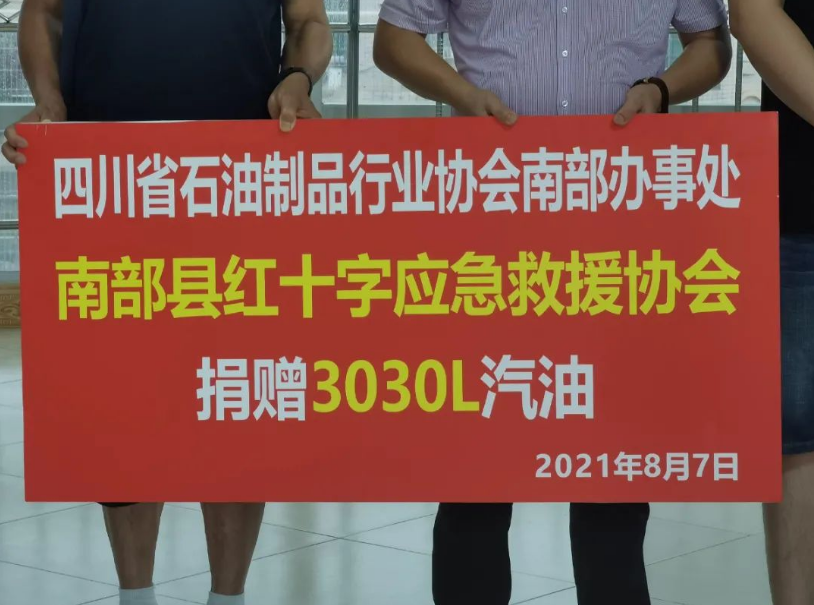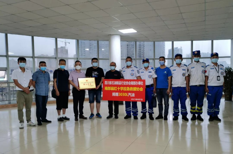 2021年8月7日上午,在南部县应急管理局大厅,县经信局、应急管理局向南部红十字应急救援协会的志愿者们进行荣誉表扬。四川省石油制品行业协会南部办事处也捐赠3030升汽油,感谢部分队员在河南鹤壁、新乡等地,开展大爱无私、英勇无畏的应急救援。